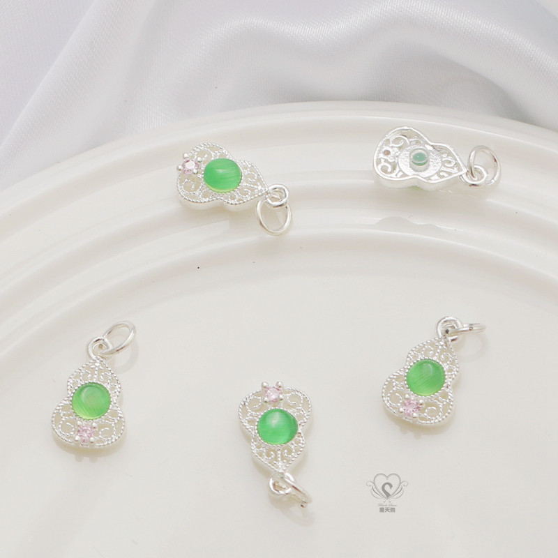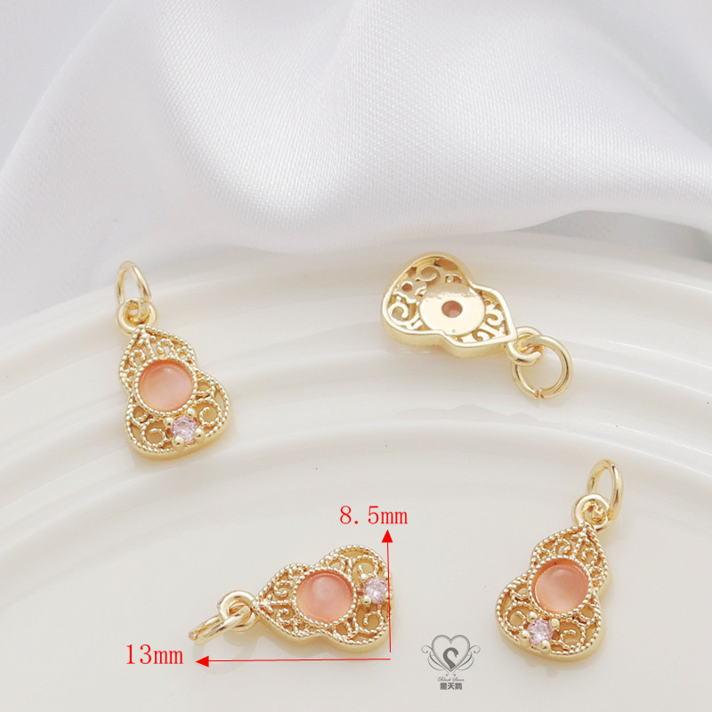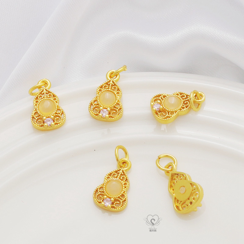 📚 14K镶嵌锆石玉石葫芦镀哑金银色吊坠diy手链项链坠子挂件饰品配件