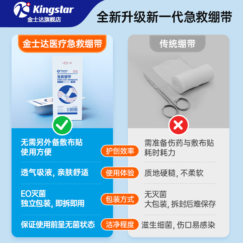 📚 金士达急救弹力止血绷带无菌医用纱布绑带卷固定敷料户外医疗用品