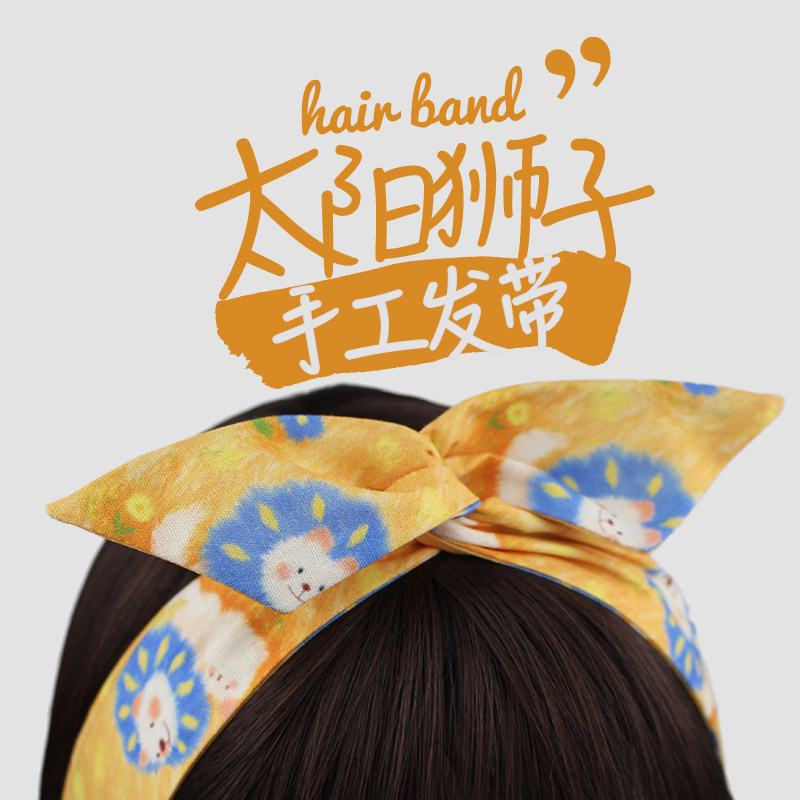 📚 手作黄色太阳狮子兔耳朵铁丝发带女绑发外出饰洗脸可爱发箍头饰品