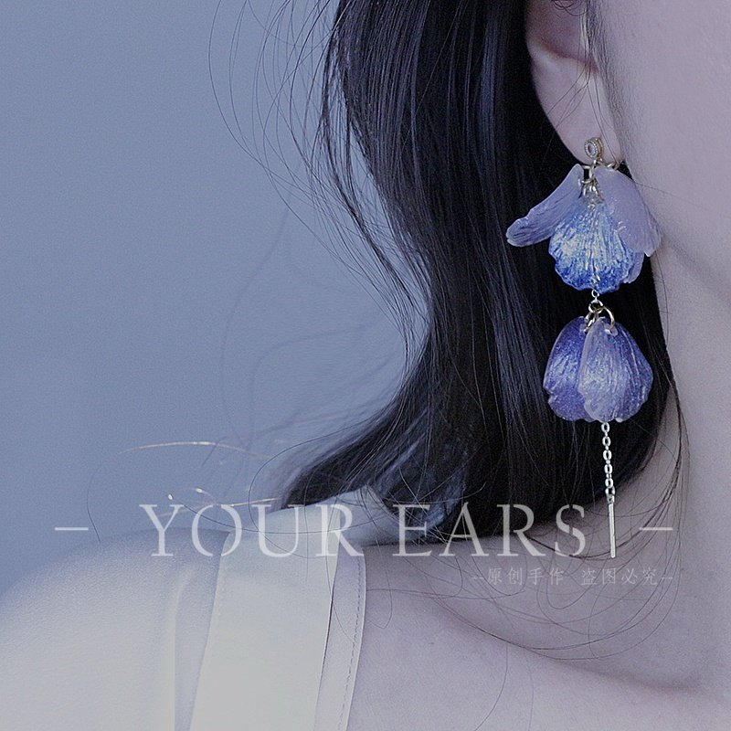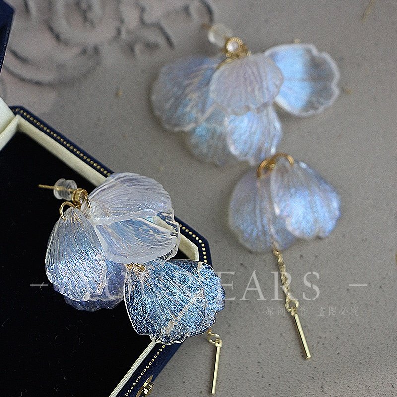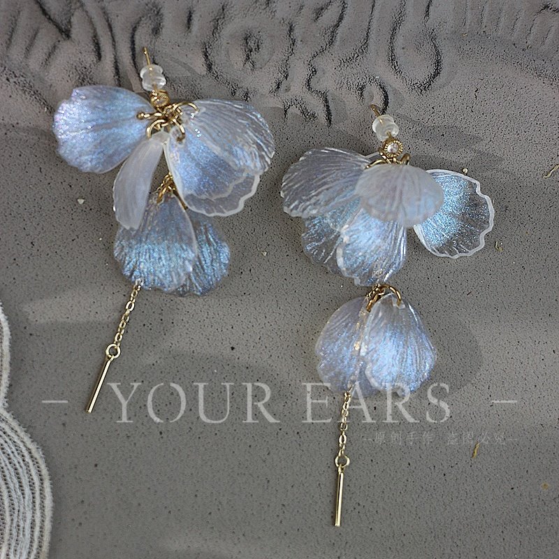 📚 YOUR EARS原创手作亚克力花瓣珠光百搭浪漫气质长款耳环耳钉