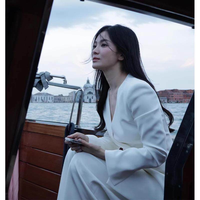 📚 宋慧乔明星同款气质感时尚西装套装女职业通勤套装白色v领小西服