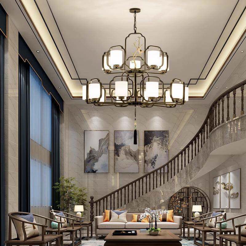 📚 新中式吊灯大气客厅灯复古中国风酒店复式楼茶楼书房卧室餐厅灯具