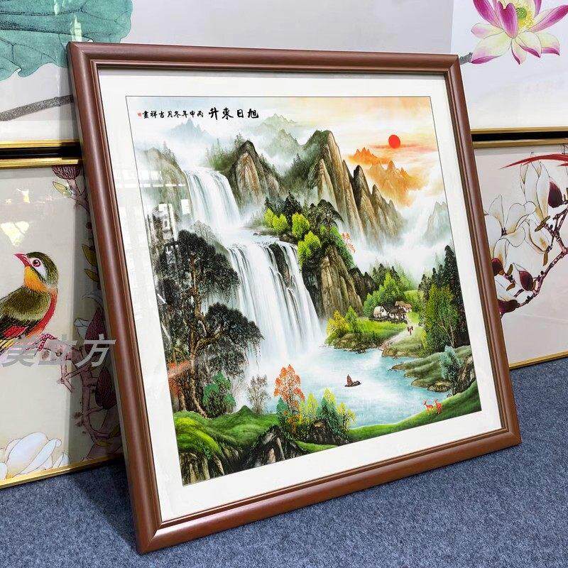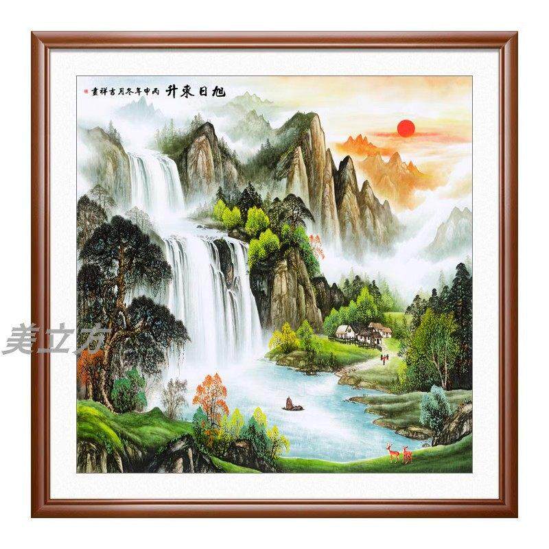 📚 旭日东升山水画日出东方客厅风景画书房挂画正方形餐厅装饰画门口