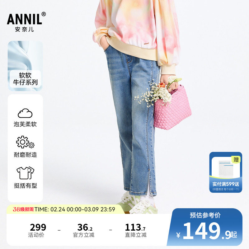 📚 【商场同款】安奈儿童装女童牛仔裤2025春新款弹力长裤AG516587