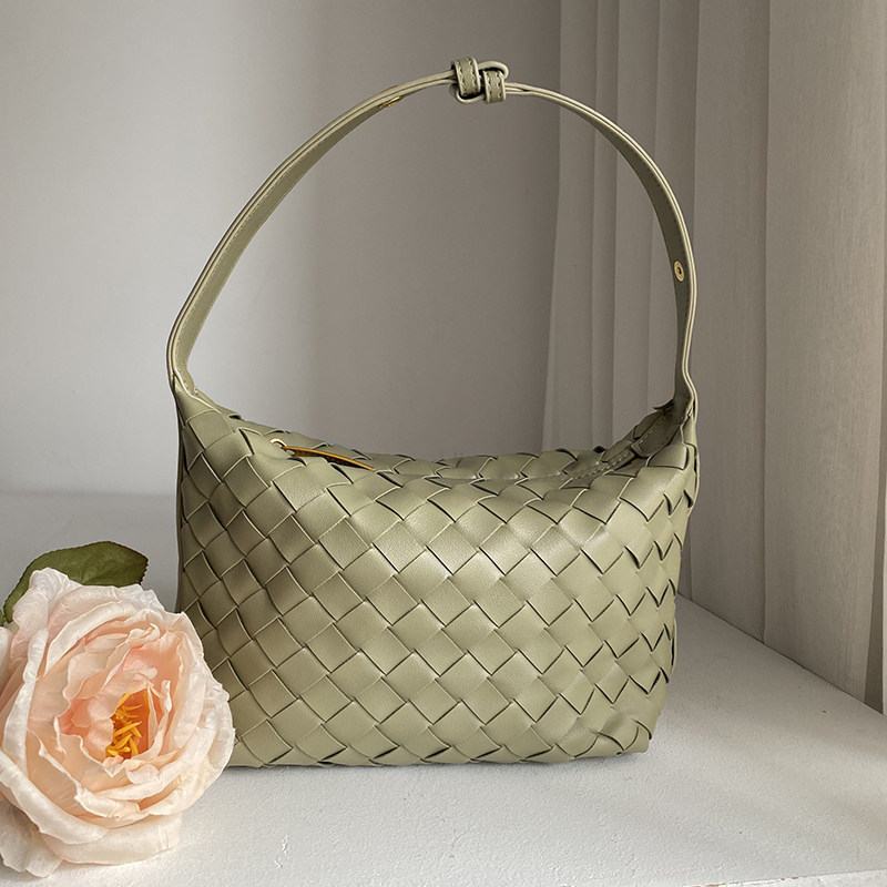 📚 绿色编织包手提2025春夏新款包包女网红软皮单肩便当包饭盒腋下包
