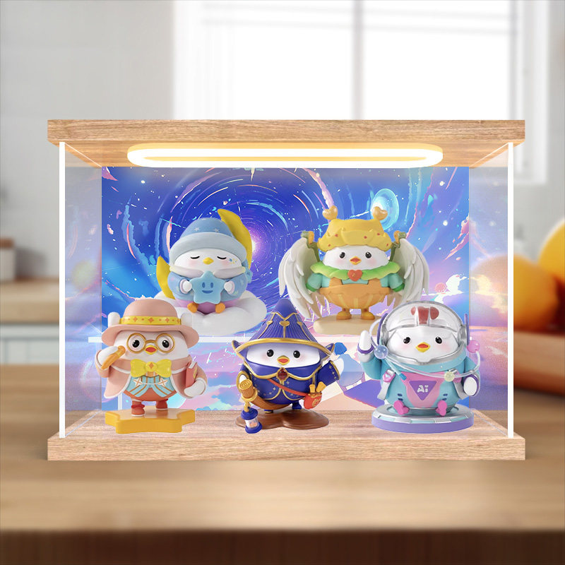 📚 川帝适用周年蚂蚁庄园小鸡公仔盲盒套盒摆件亚克力透明灯光展示盒
