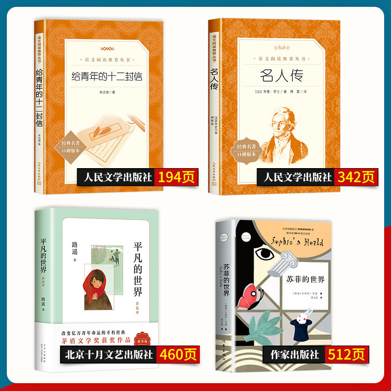 📚 名人传罗曼罗兰正版原著人民文学出版社给青年的十二封信朱光潜苏菲的世界平凡的世界路瑶八年级下册必读课外书初中生初二无删减版