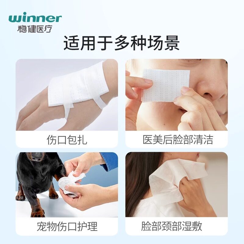 📚 稳健嘉易全棉无纺布外科敷料医用灭菌纱布 7.5*7.5cm 12袋/盒