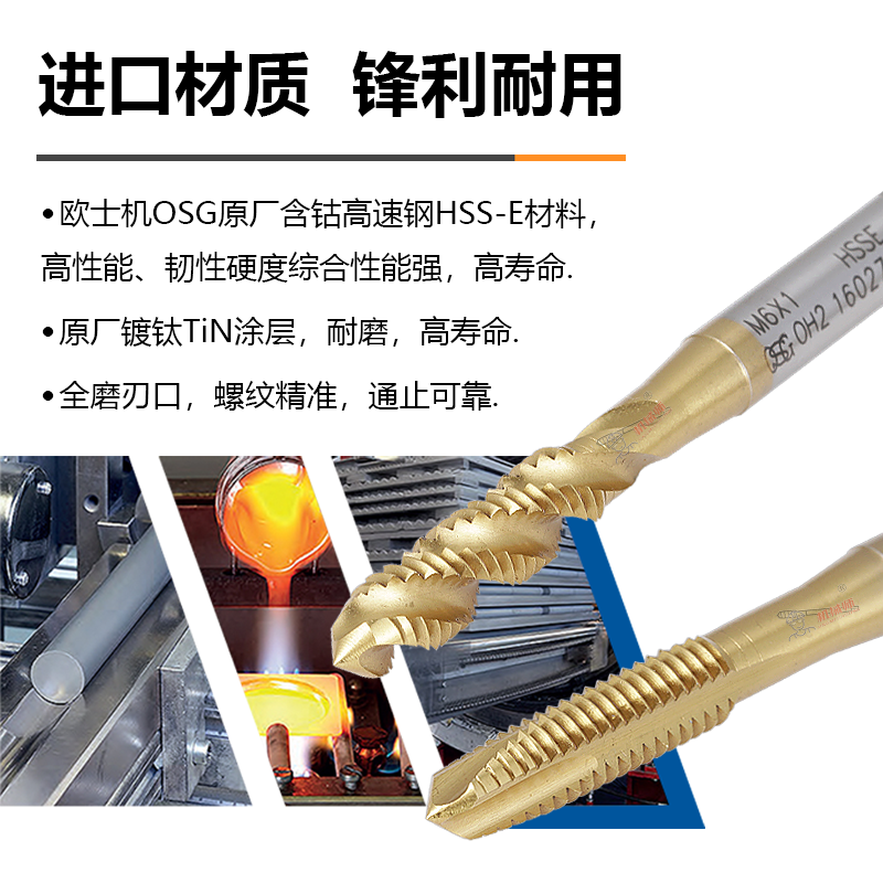 📚 日本OSG镀钛螺旋丝攻M1.2M3M8M10电镀前加大先端丝锥6G/7G/OH4/5