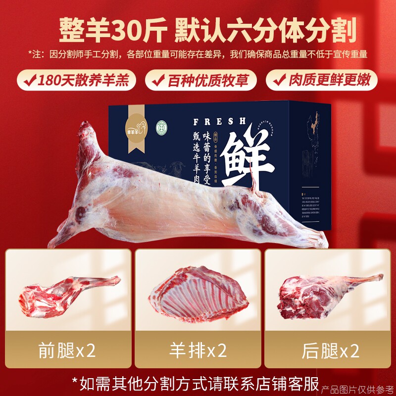 📚 芈羊羊宁夏滩羊肉新鲜现杀整羊30斤羊排羊蝎子羊腿烤全羊年货礼盒