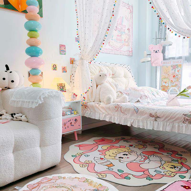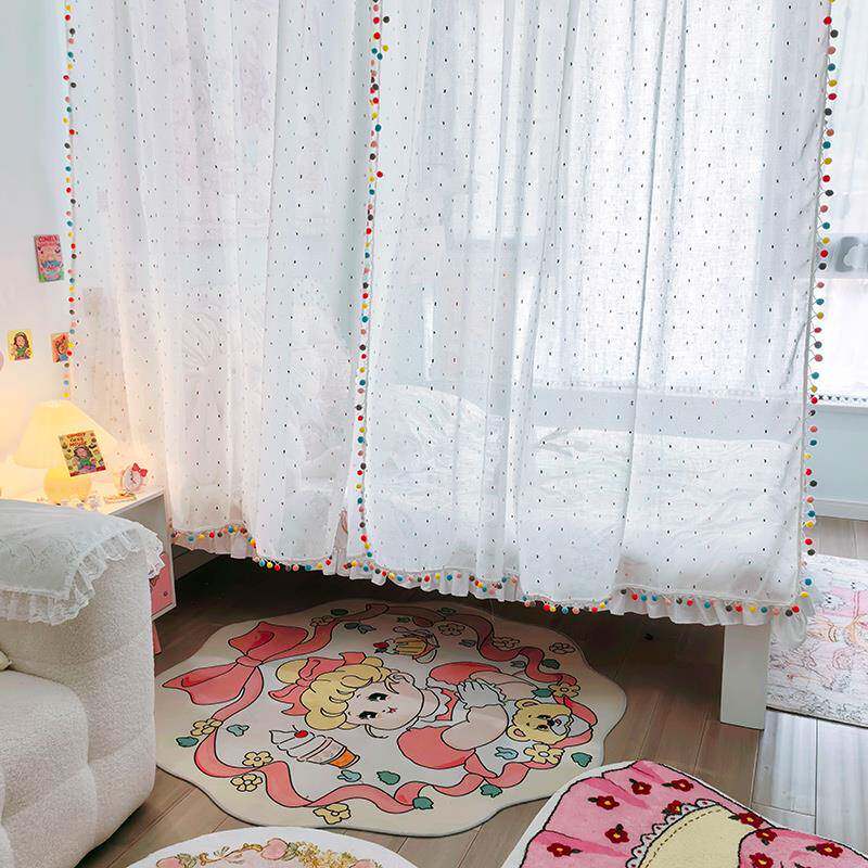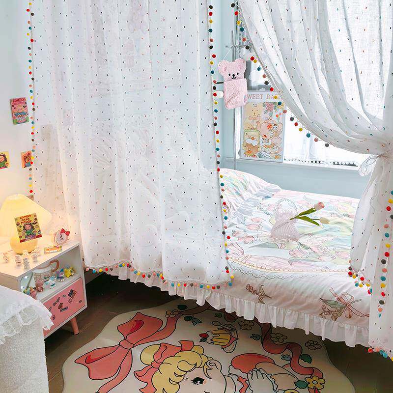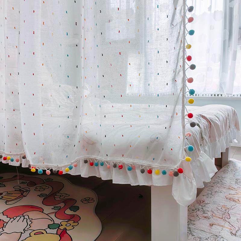 📚 卧室床对门隔断帘彩球花边布帘遮挡帘柜子自粘门帘子屏风免打孔