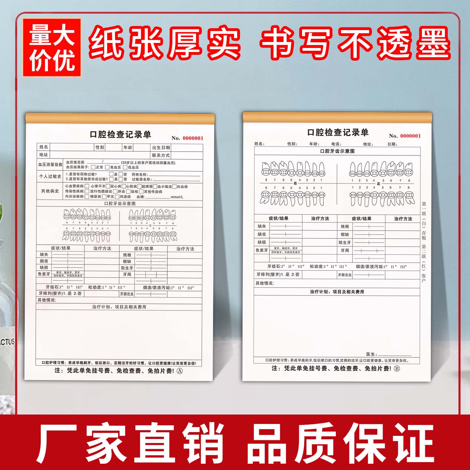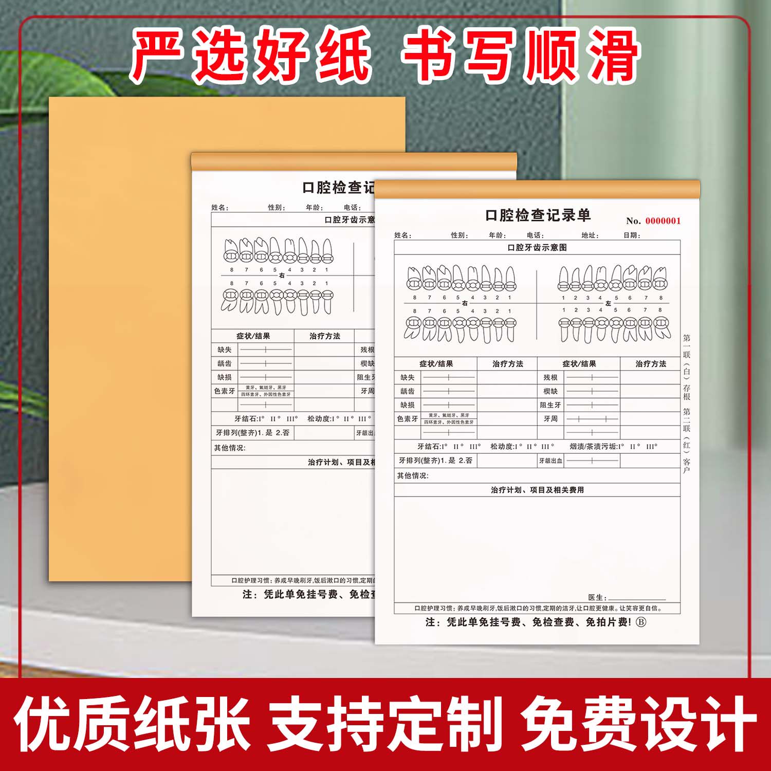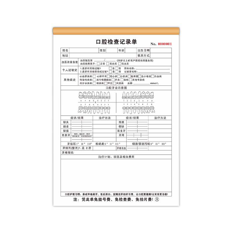 📚 口腔检查记录表牙科医院顾客咨询记录单检查表儿童复诊表处置单社区义诊单门诊服务设计单拔牙知情同意书定制
