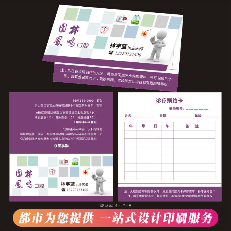 📚 牙科门诊复诊卡就诊卡定制名片设计口腔乳牙患者出入保修单信息卡