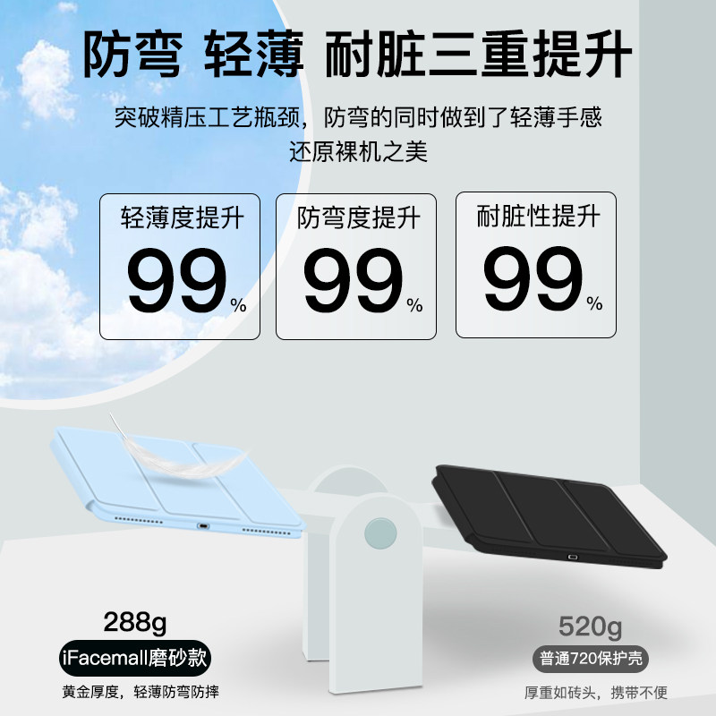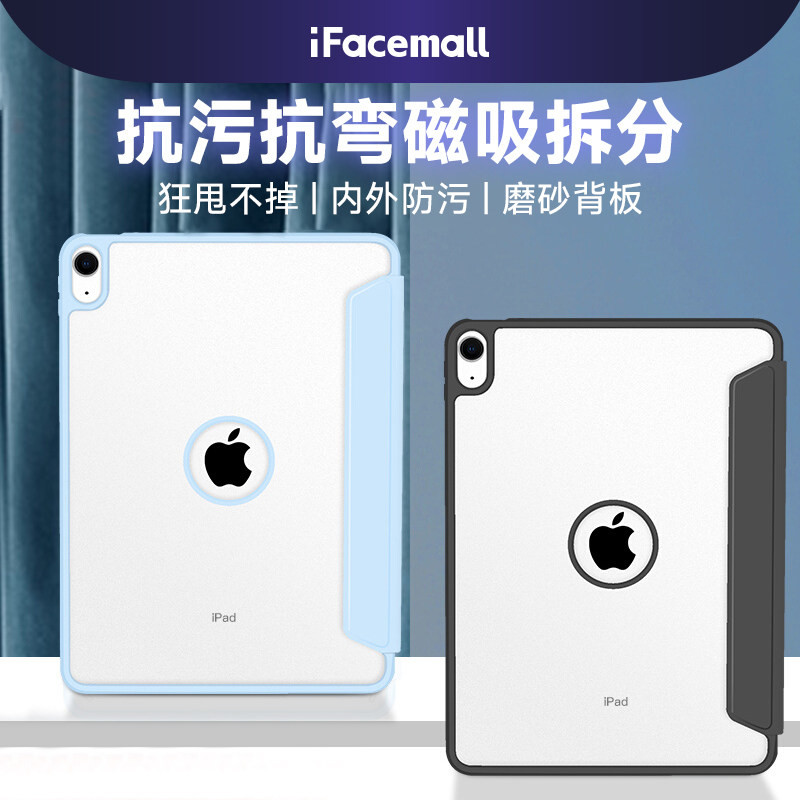 📚 ifacemall2022ipadair5保护壳适用2021pro11寸保护套苹果mini6磁吸拆分12.9平板4全包10.2防弯10代摔磨砂硬壳