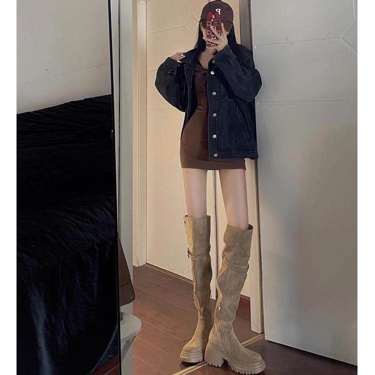 📚 过膝绒面长靴女厚底8cm2025秋冬新款美拉德两穿翻折长筒靴高筒靴
