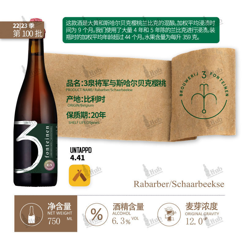 📚 三泉 3fonteinen 将军/与斯哈尔贝克樱桃 兰比克 750ml 精酿啤酒