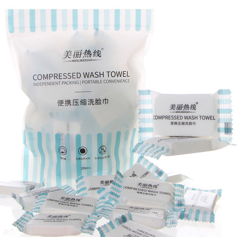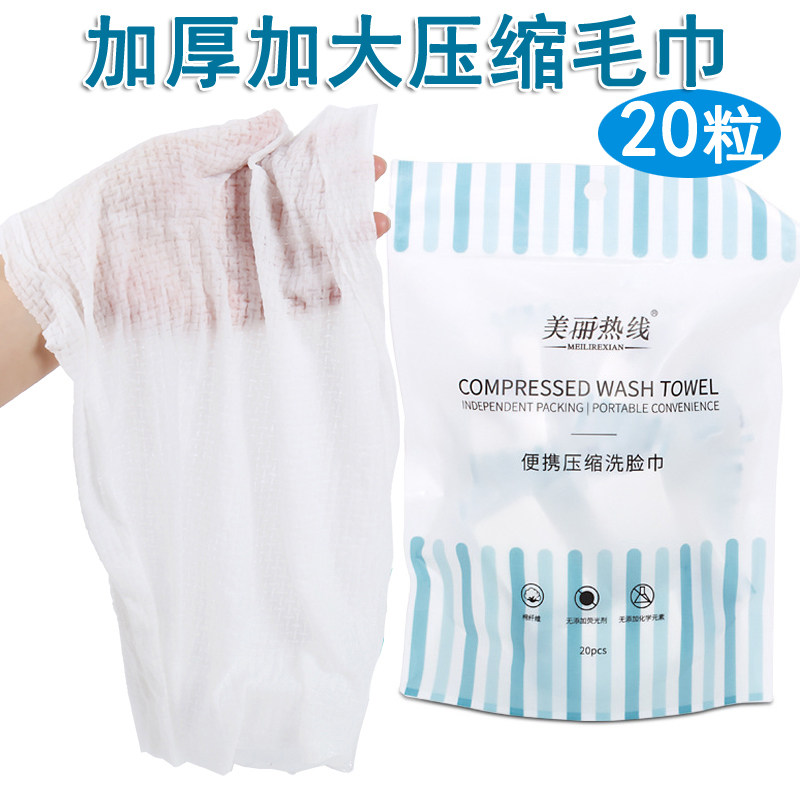 📚 美丽热线加厚加大压缩毛巾便携天然纯棉柔巾洗脸巾洁面巾20粒装