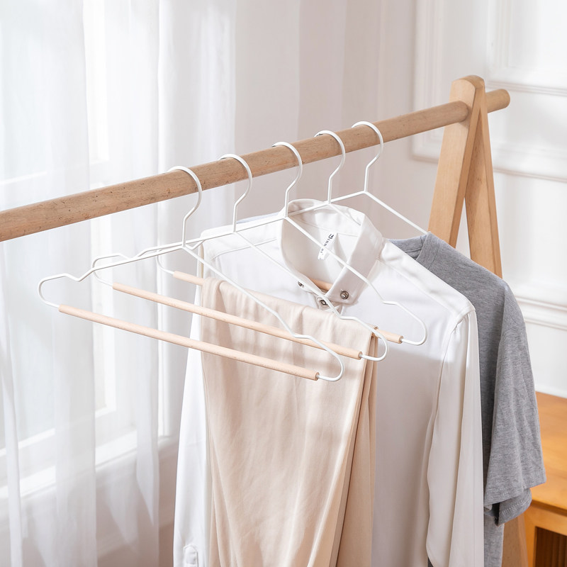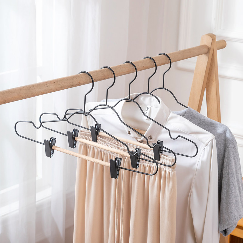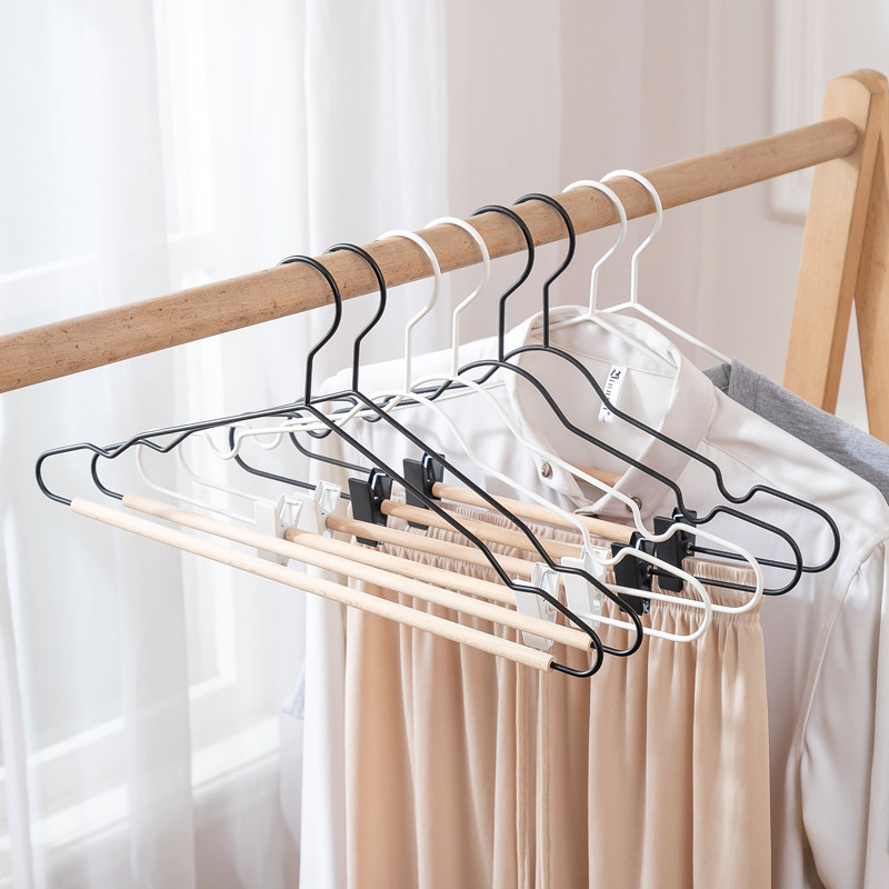 📚 榉木北欧风黑白色衣架铁艺实木内衣衣挂带夹子衣服架服装店裤架夹
