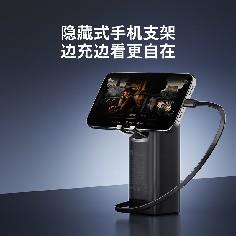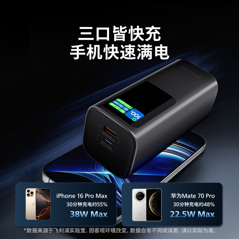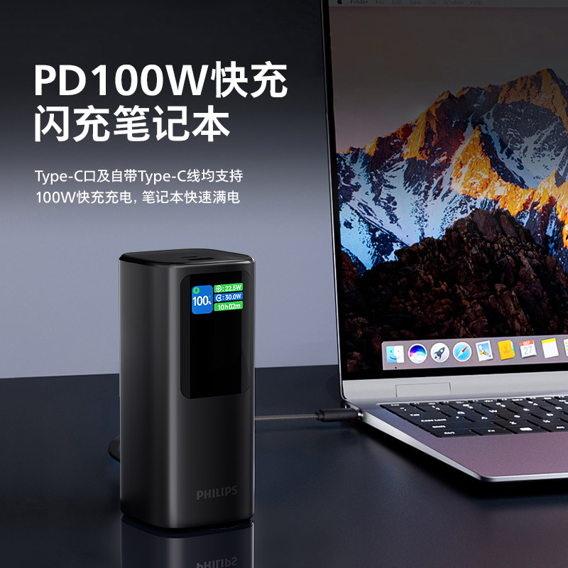 📚 飞利浦能量舱130W高功率大容量充电宝2025新款自带线支架移动电源飞机可携带电脑快充适配苹果16安卓2万毫安