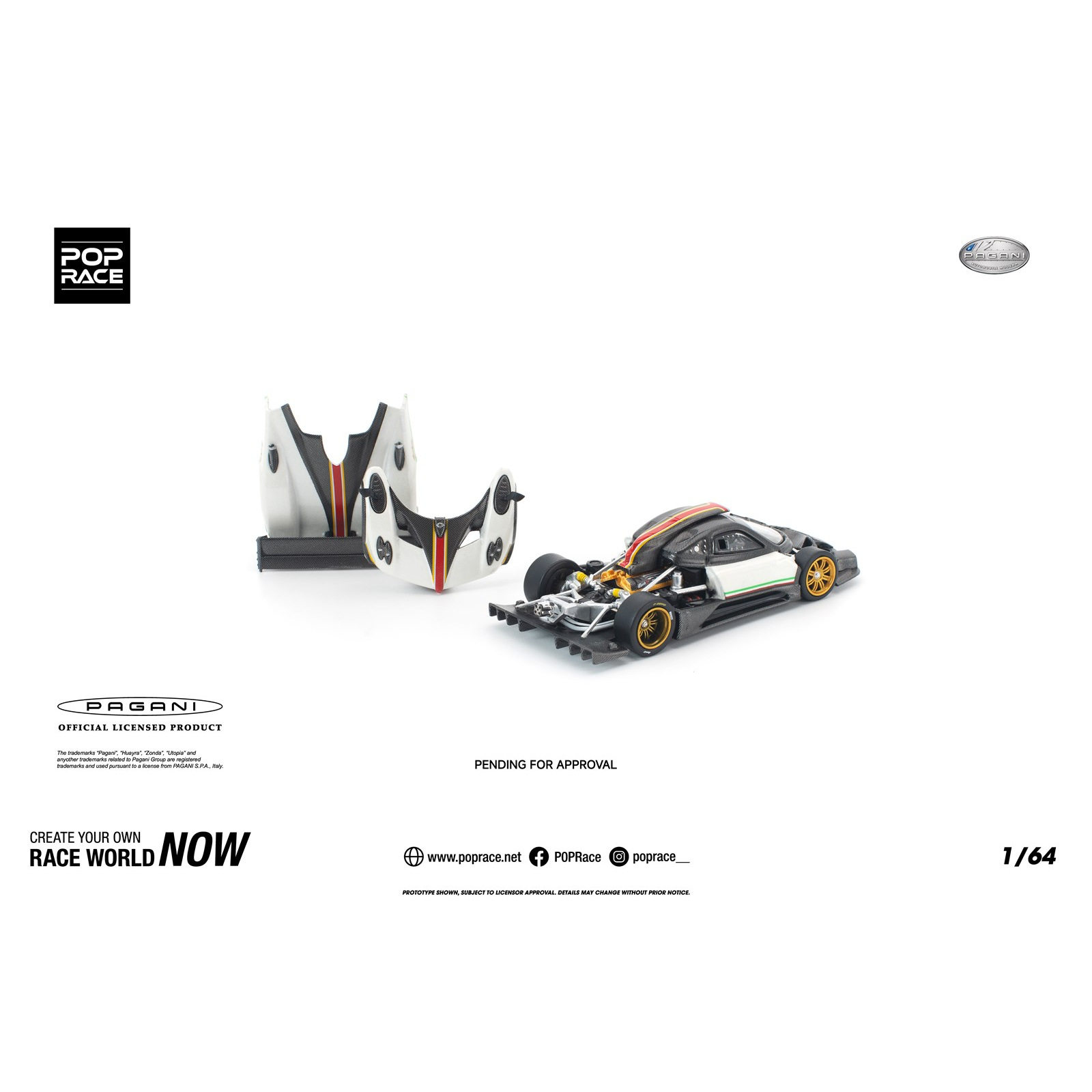 📚 [PDS]POPRACE 1:64 帕加尼 宗塔Zonda R 前后盖可开 合金车模