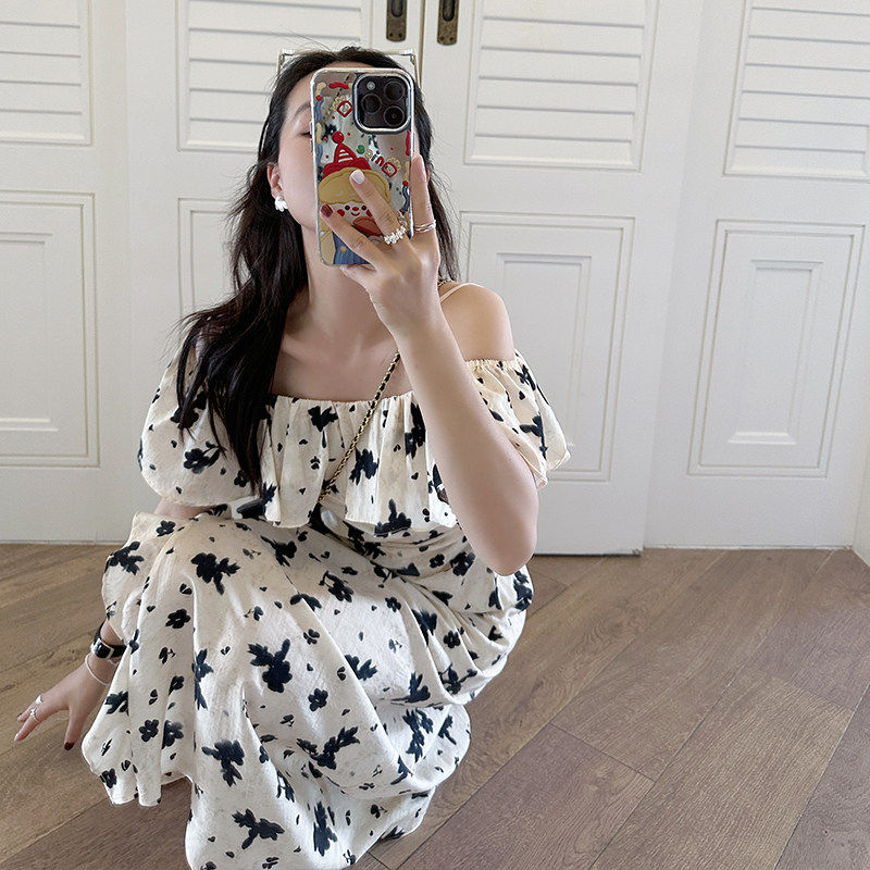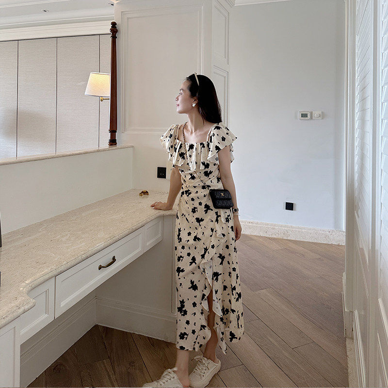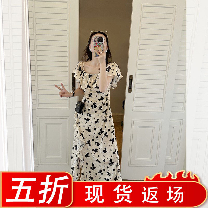📚 金苏一 年中5折清仓 复古印花连衣裙收腰显瘦两穿气质木耳边