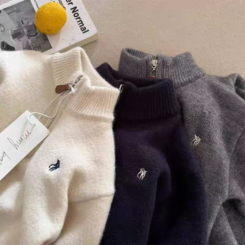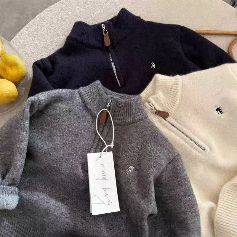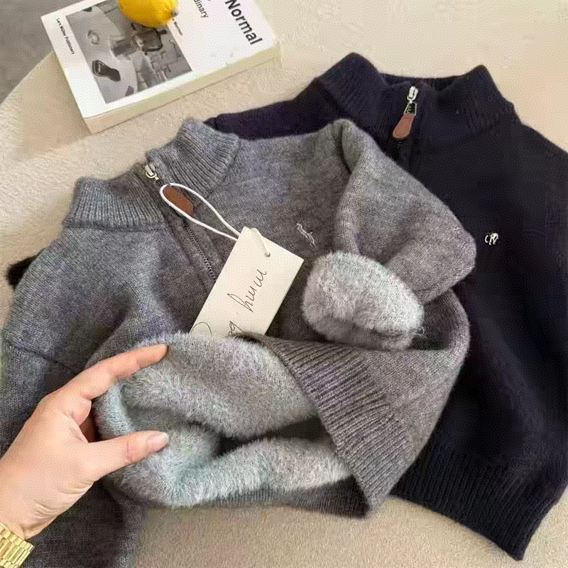 📚 儿童毛衣男加绒一体绒冬季款中小童拉链针织衫外搭宝宝套头衫加厚