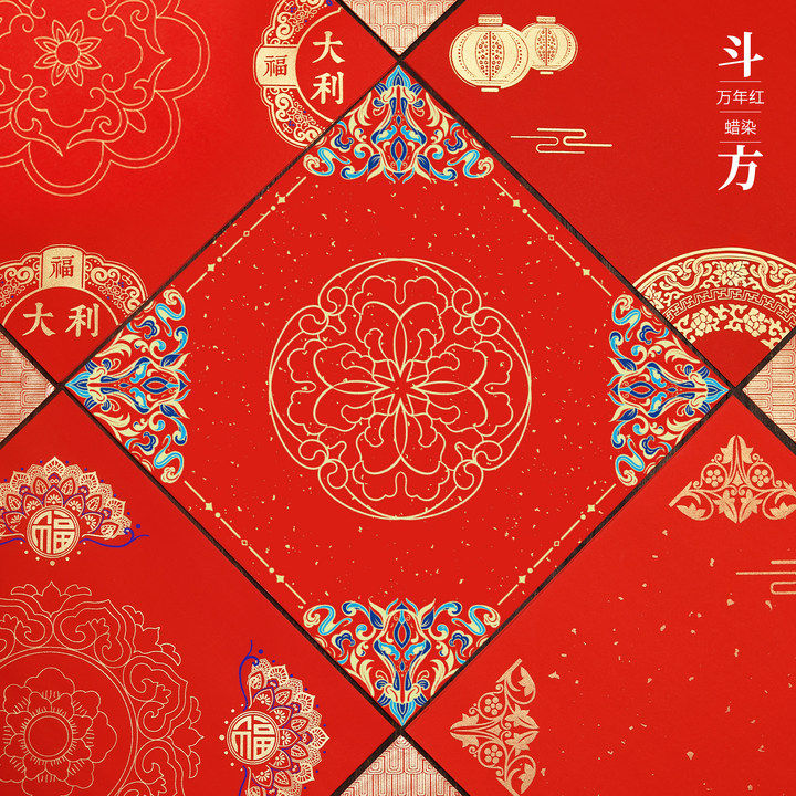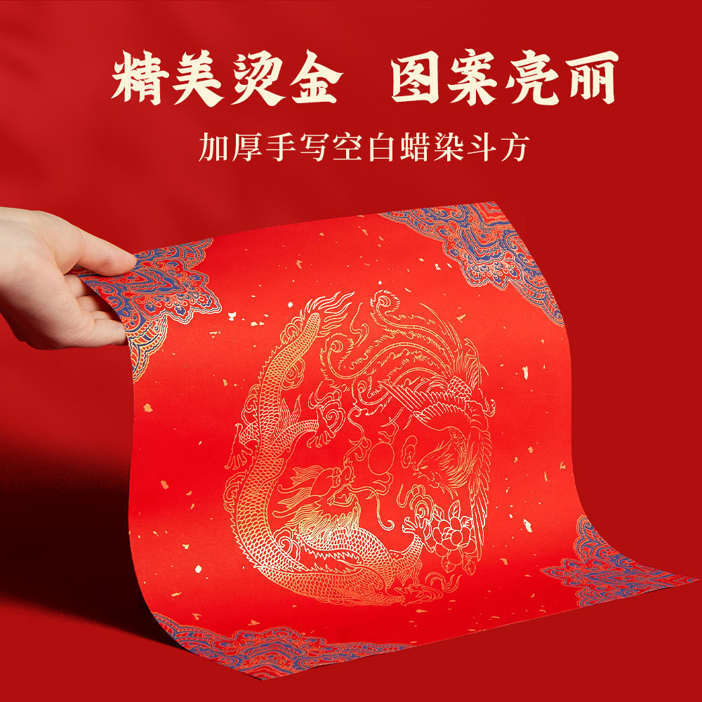 📚 六品堂新年福字红纸红斗方加厚蜡染宣纸对联专用纸喜庆空白书法2026年新款春联纸空白对联专用手写福字的红纸