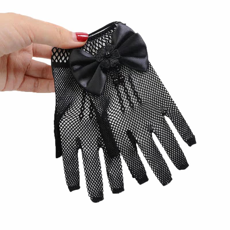 📚 Kids Girl White Black Mesh Bow Lace Gloves Party Supplies Bi