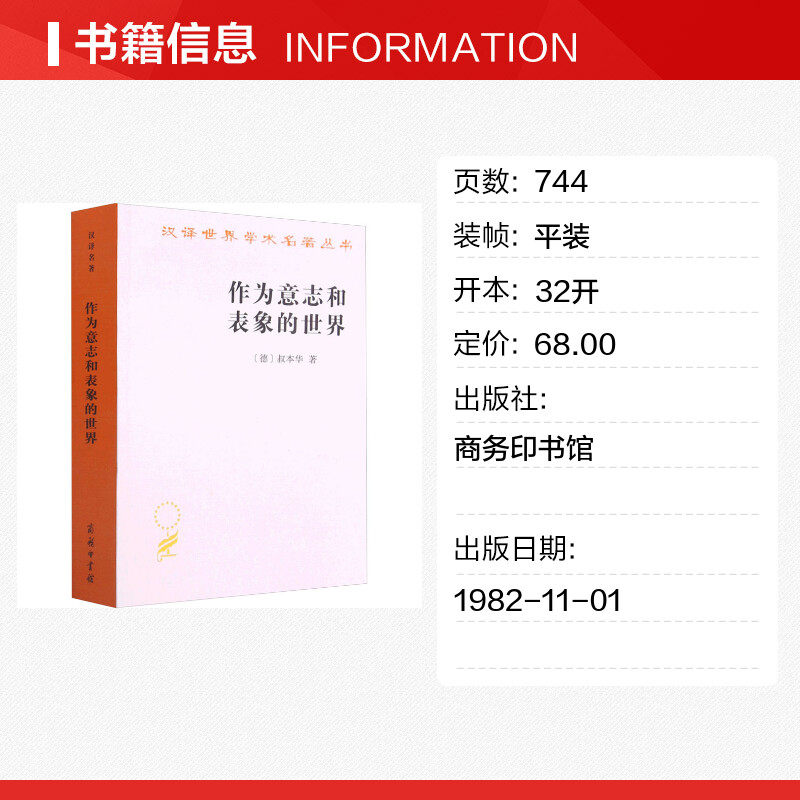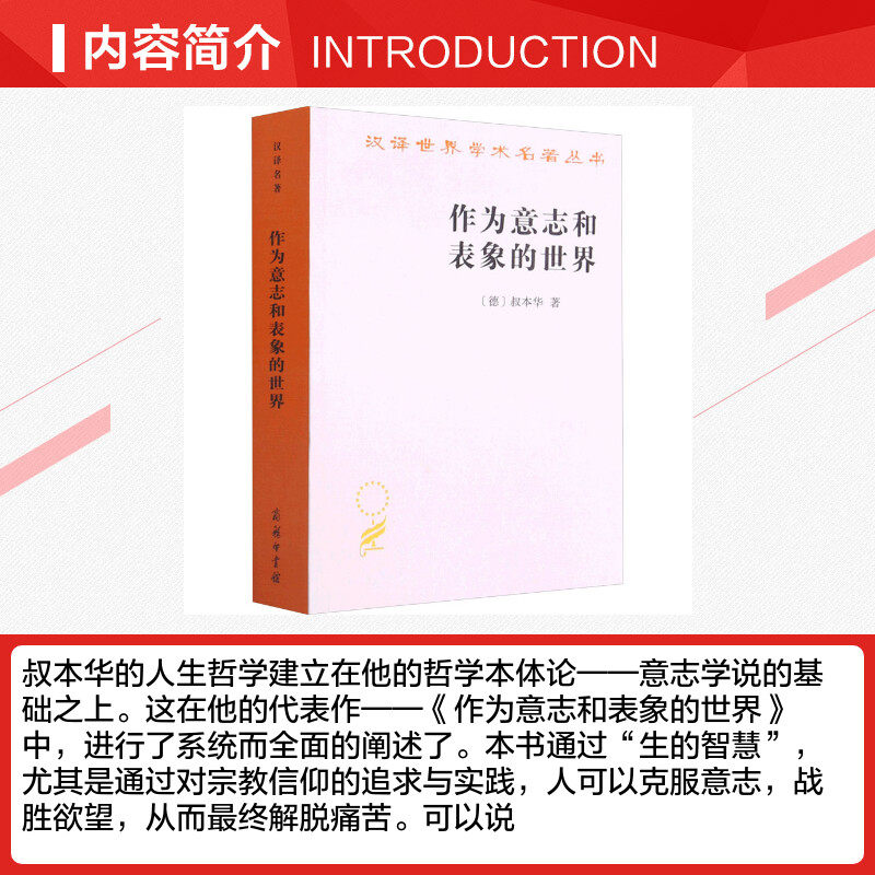 📚 作为意志和表象的世界 (德)叔本华 著 石冲白 译 文化理论社科 新华书店正版图书籍 商务印书馆