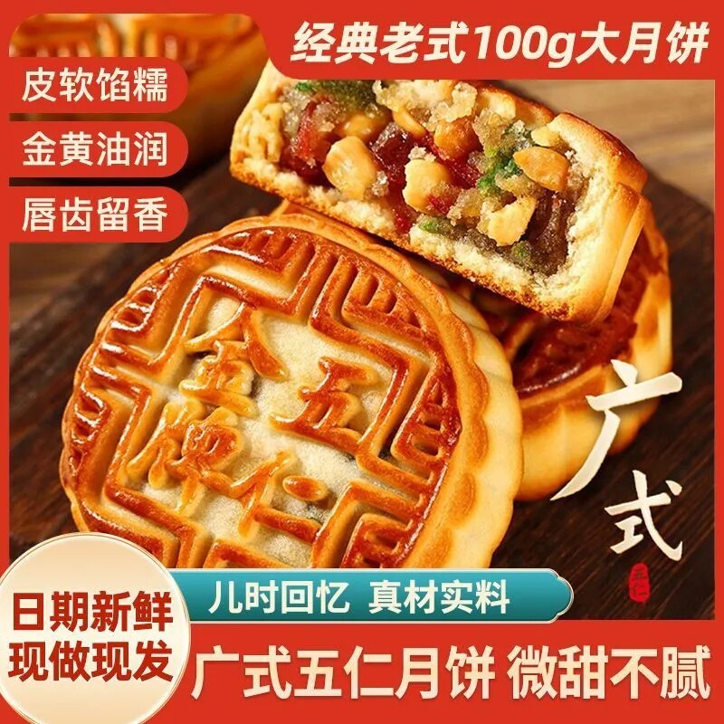 📚 正宗老五仁月饼老式传统口味手工果仁糕点中秋广式老味道新鲜现发