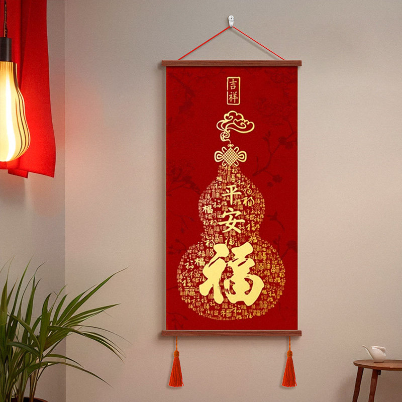 📚 新中式福禄呈祥入户玄关挂画葫芦客厅沙发背景墙装饰画百福图壁画