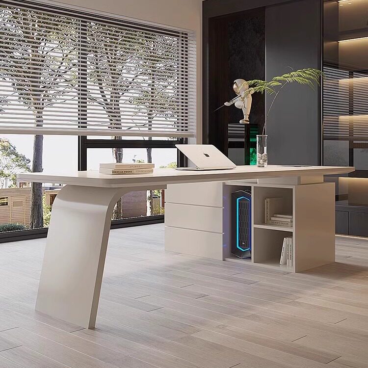 📚 设计师款烤漆办公桌医美咨询桌意式极简老板桌美容院奶茶色电脑桌