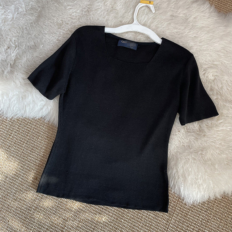 📚 真丝打底衫女短袖毛衣白厂丝方领宽松内搭上衣短款真丝打底针织衫