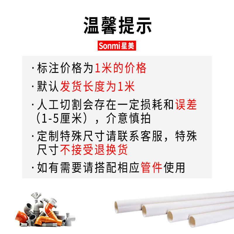 📚 PVC排水管雨水排污管道下水通风消音硬50 75 110 160 200 250 315