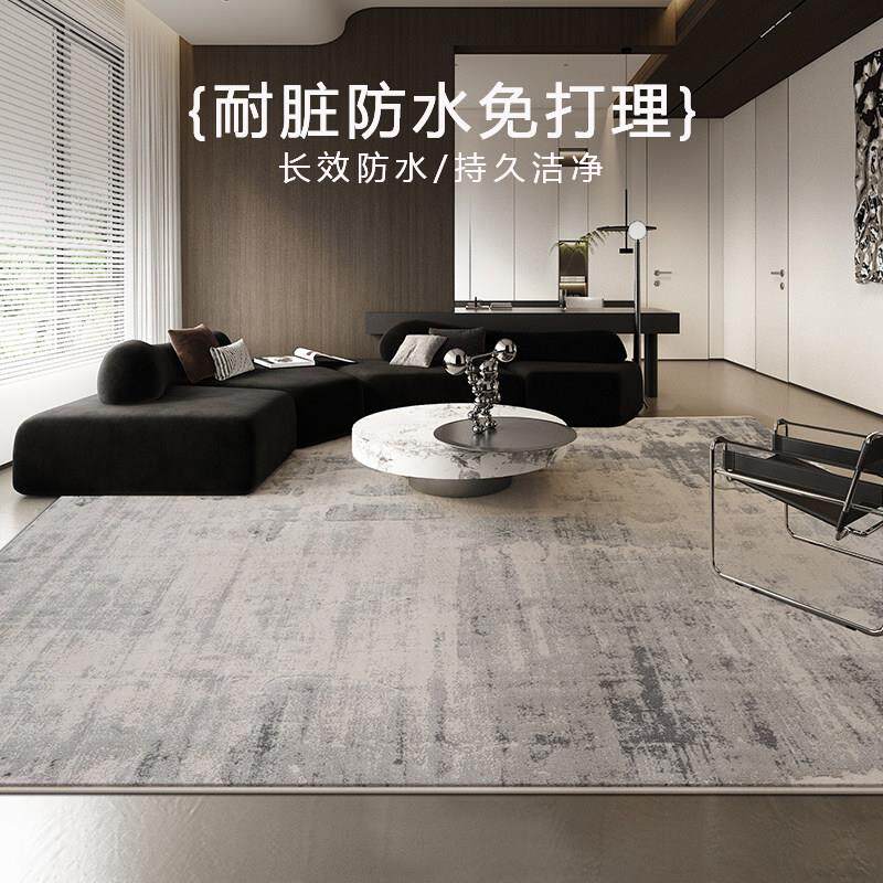 📚 现代简约地毯客厅茶几毯地垫高级灰黑白灰毯面混纺防水耐脏极简风