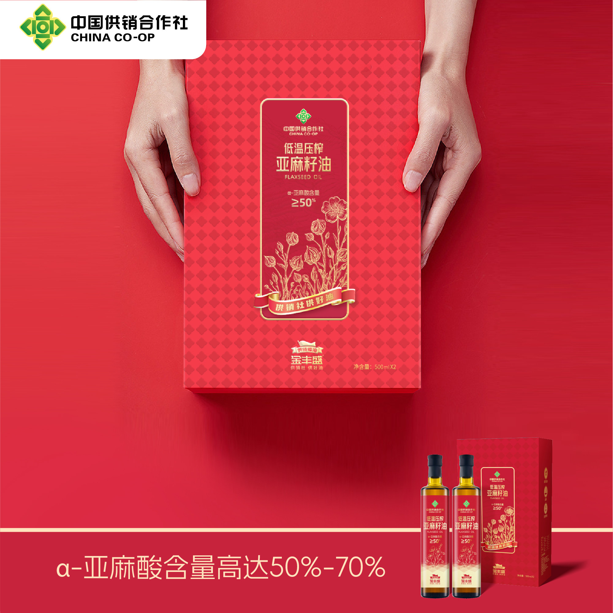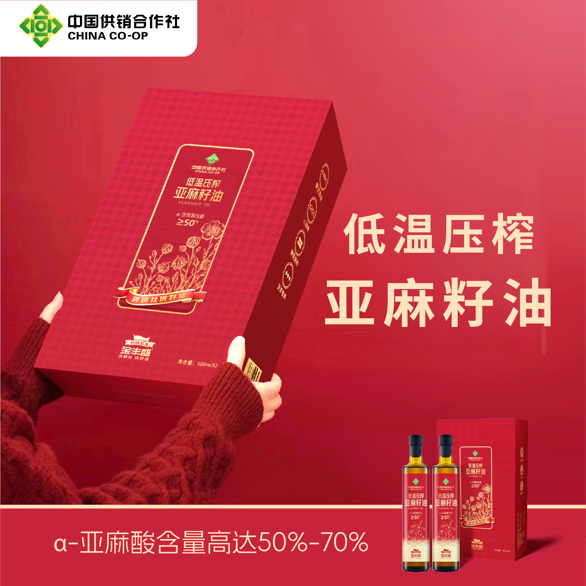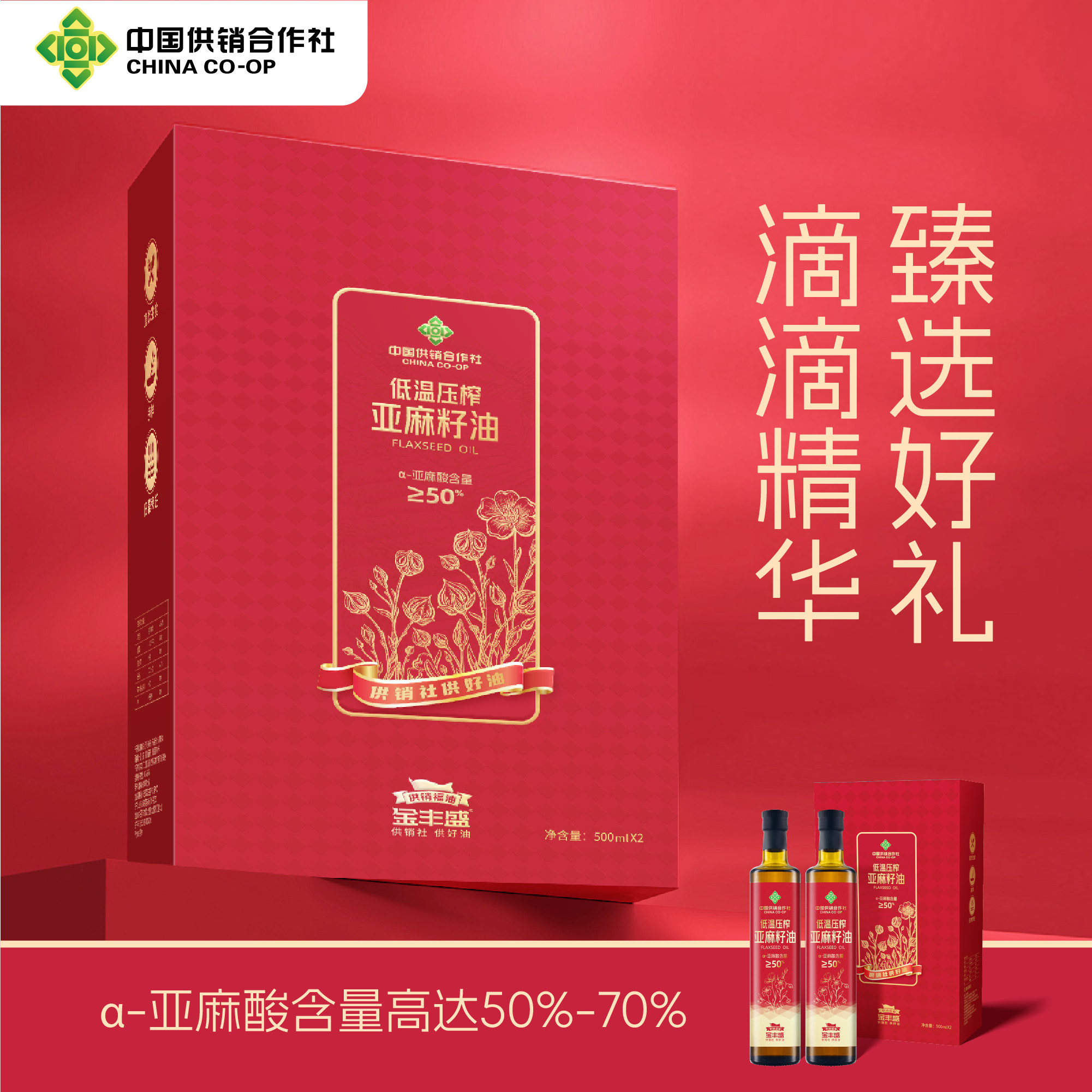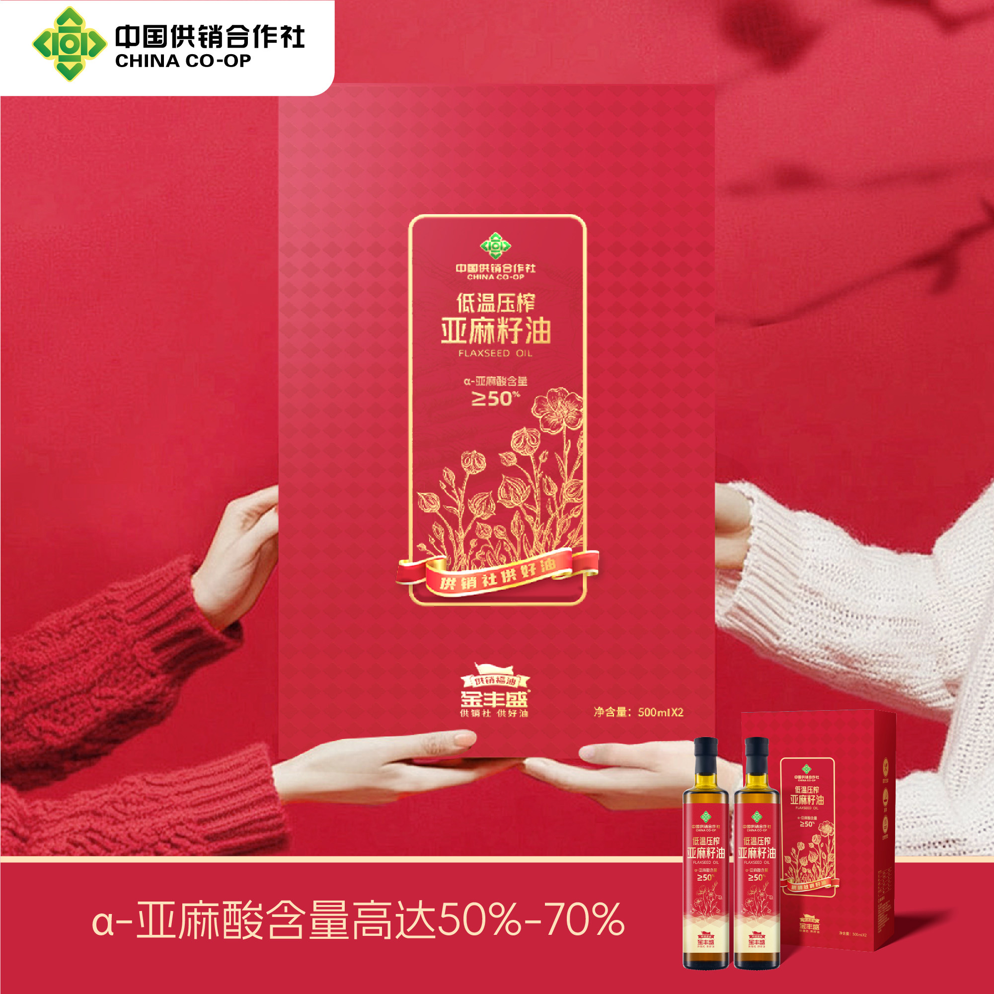 📚 金丰盛冷榨一级亚麻籽500ml*2瓶家用食用植物油礼盒装过年送礼
