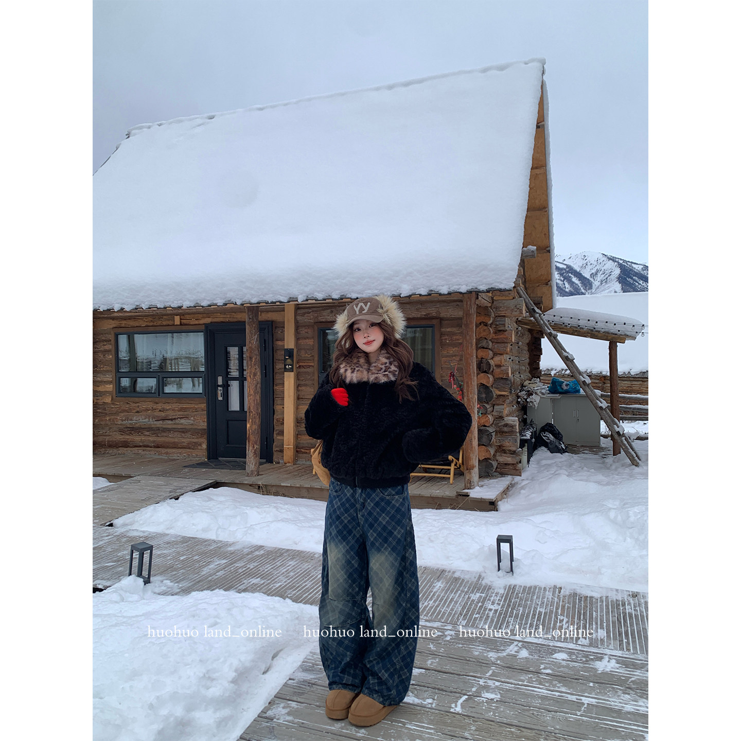 📚 HuoHuo 弯刀菱格 街头美式 裤子女高级立体弯刀剪裁菱格纹牛仔裤