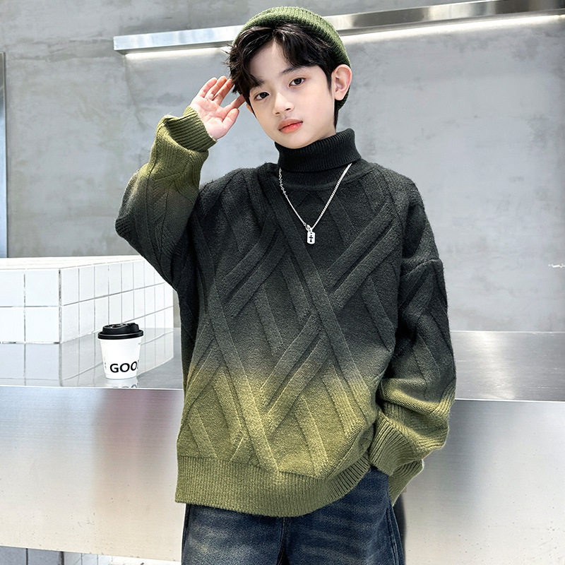 📚 男童毛衣冬季2025新款冬装高领中大童儿童男孩秋冬款渐变打底衫潮
