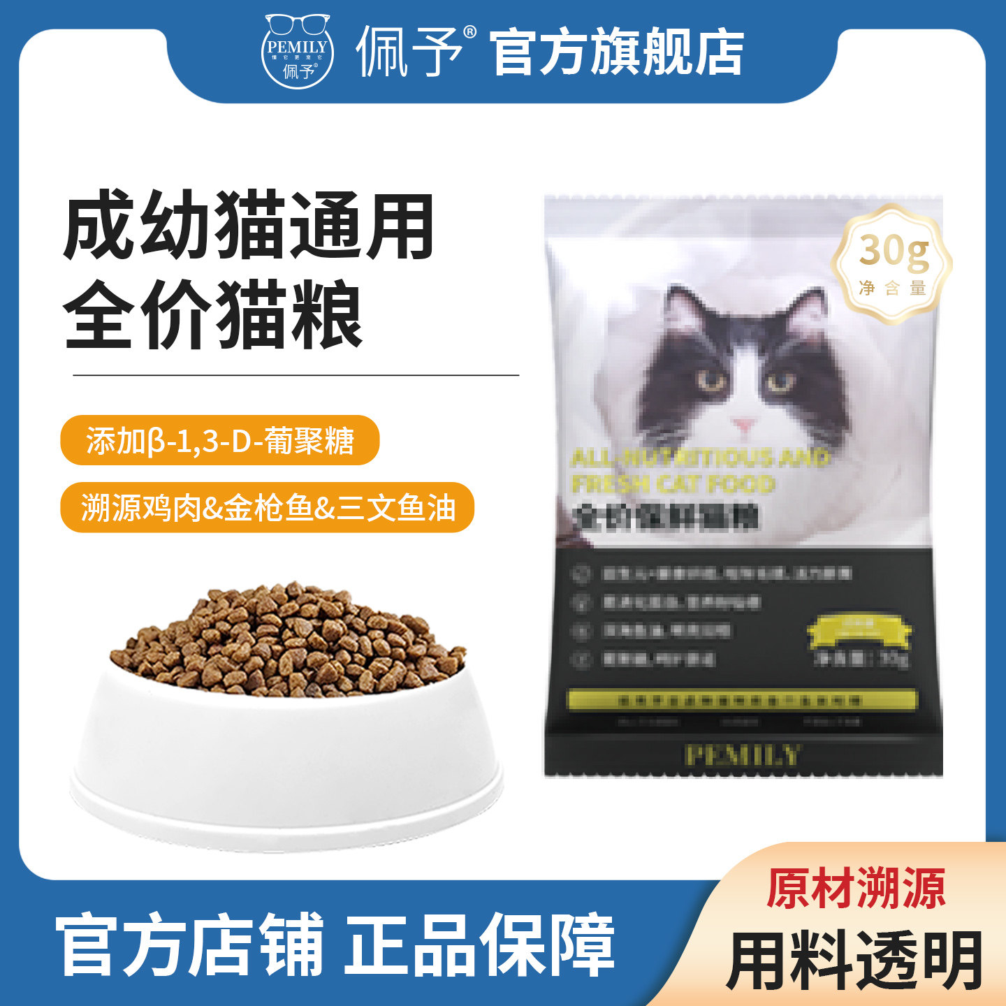 📚 佩予猫粮成幼猫通用全价鸡肉猫粮尝鲜装30g*10旗舰店官方正品