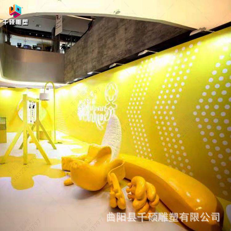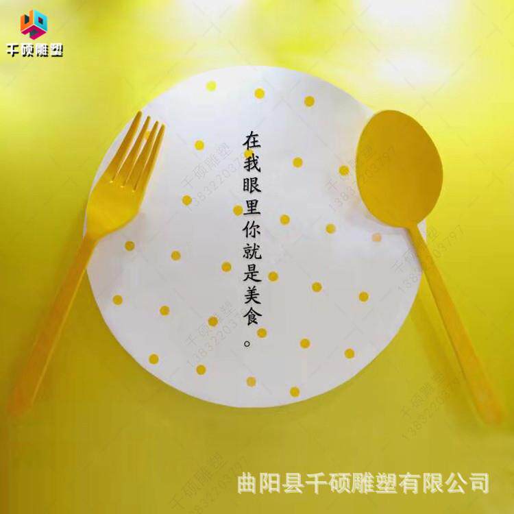 📚 玻璃钢大型彩绘水果香蕉雕塑商场美陈墙面装饰盘子勺子道具摆件