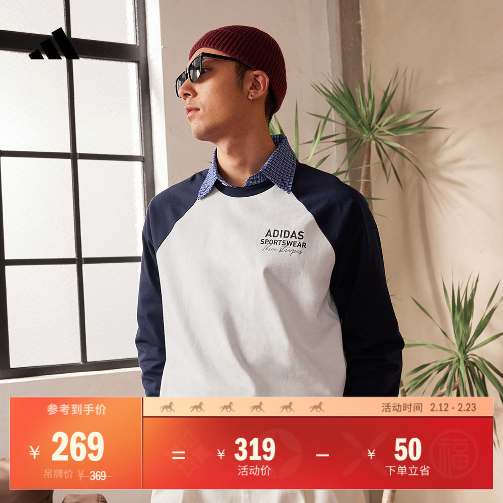 📚 休闲宽松撞色纯棉圆领长袖T恤男女秋季adidas阿迪达斯轻运动