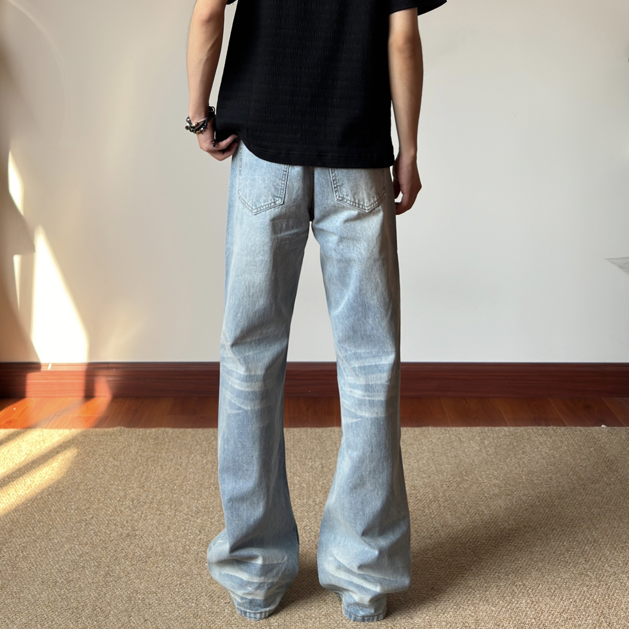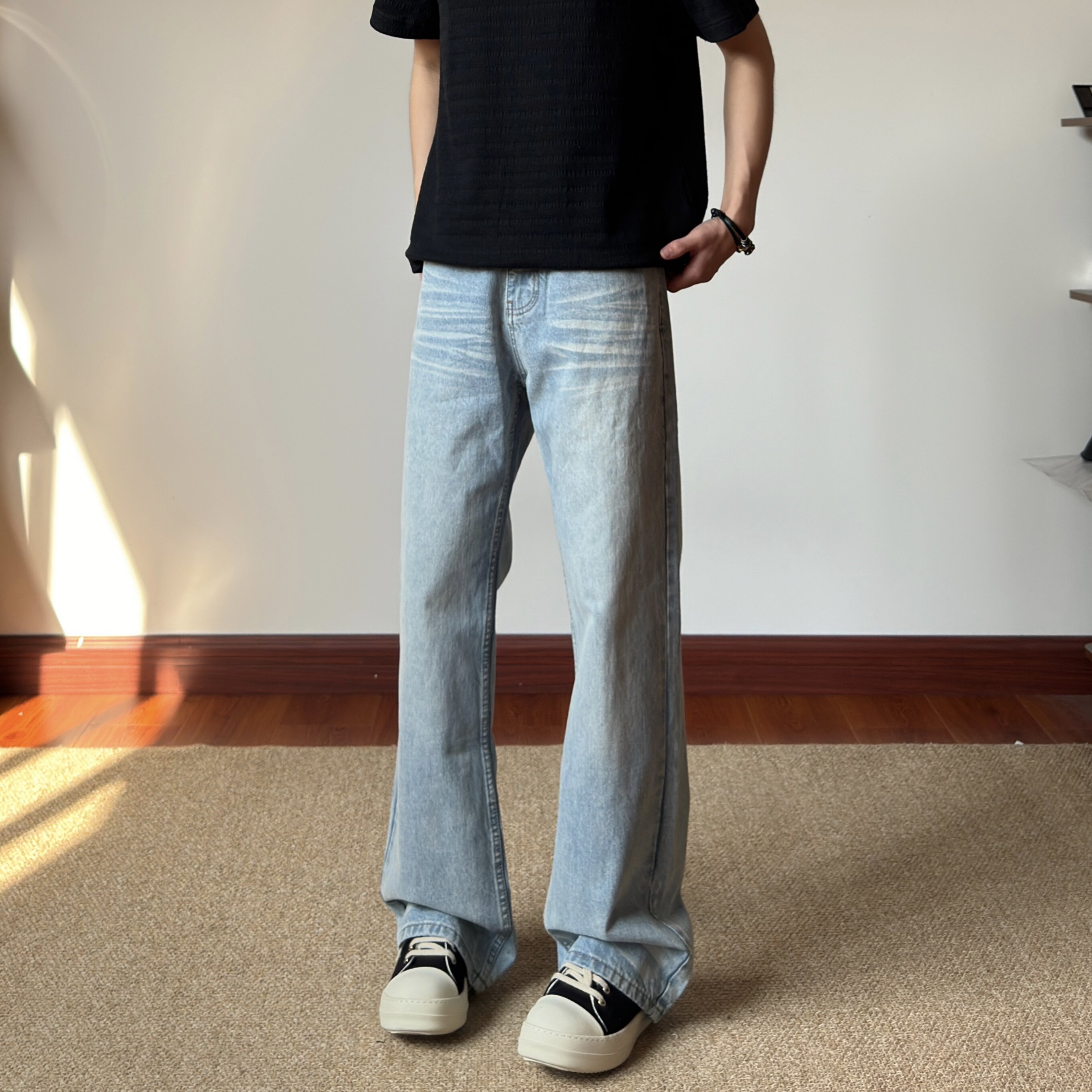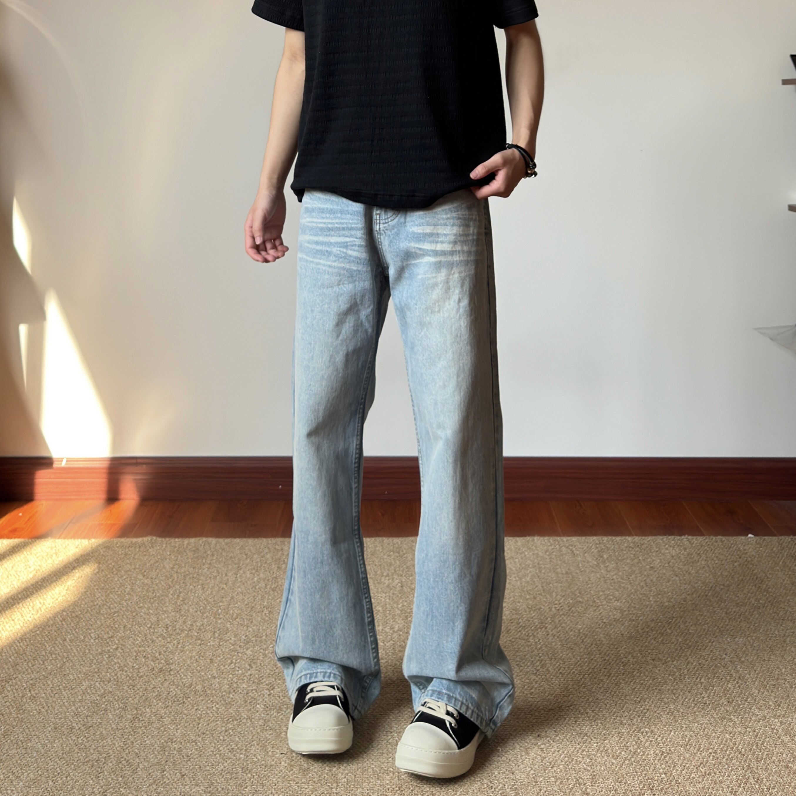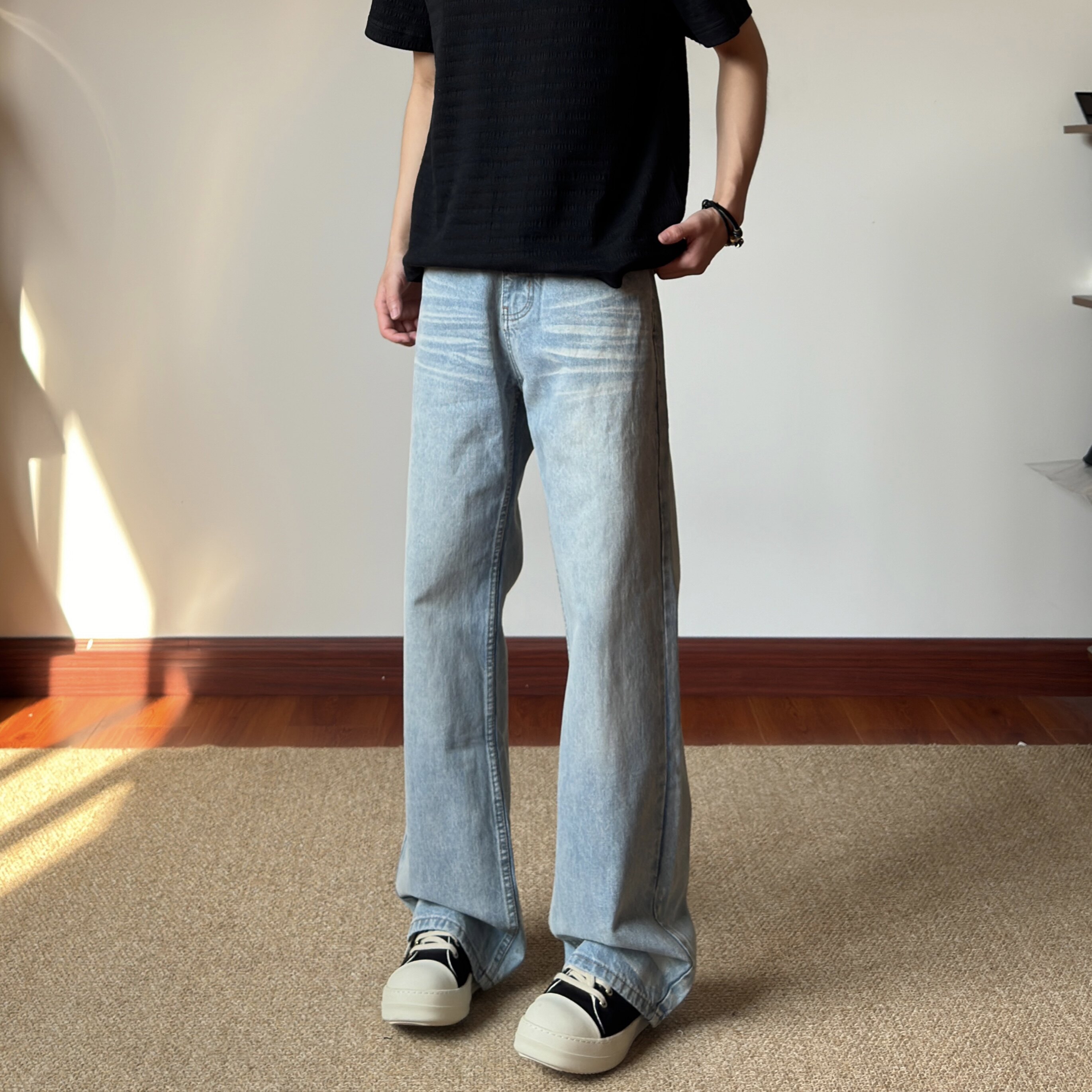 📚 布老哥Blog美式复古水洗小微喇牛仔裤宽松显高飘逸猫须直筒裤K772