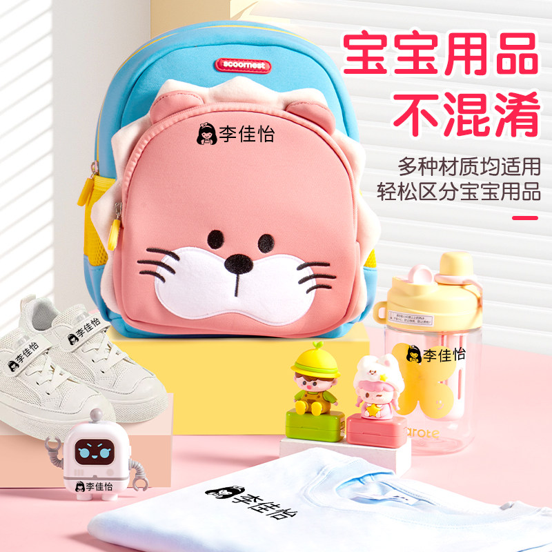 📚 六品堂儿童名字印章宝宝防水名字贴姓名贴衣服免缝幼儿园入园准备用品小学生衣物校服刻字盖章印个人自动按压