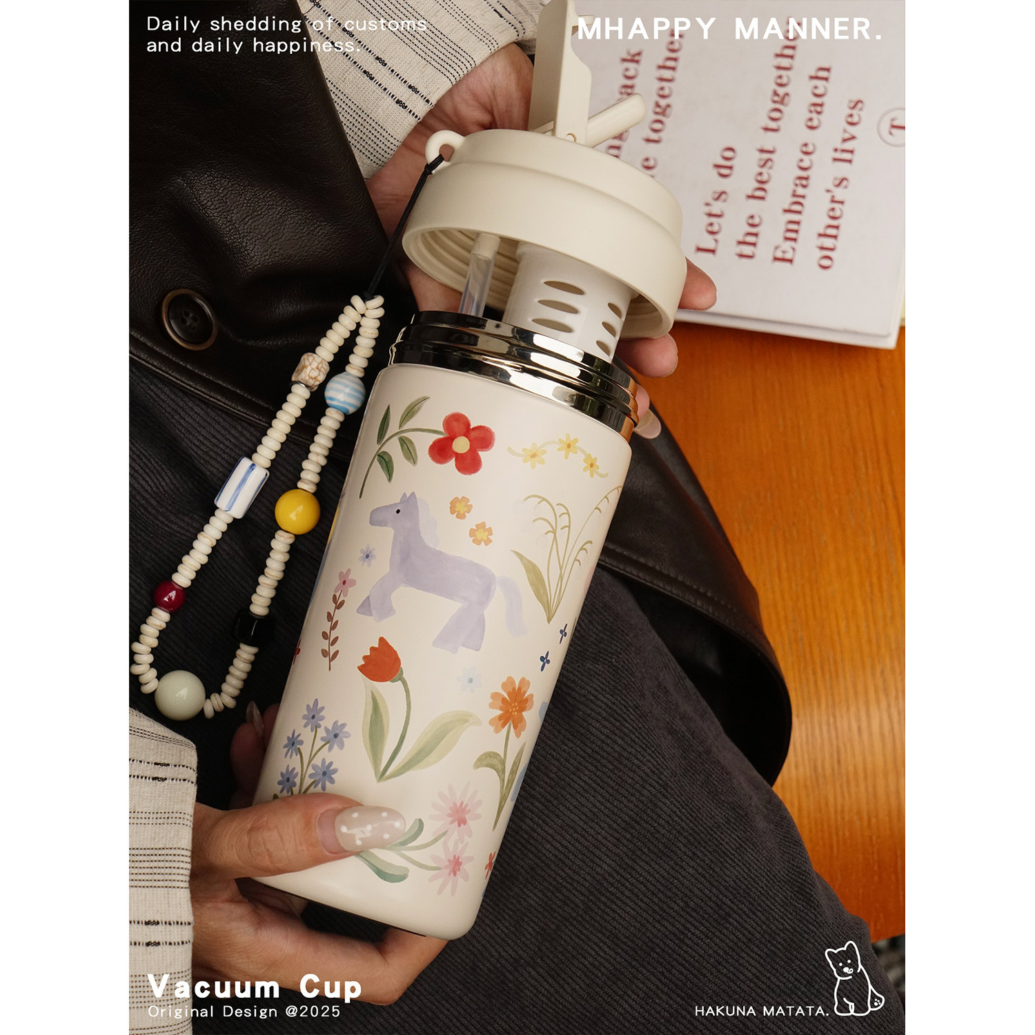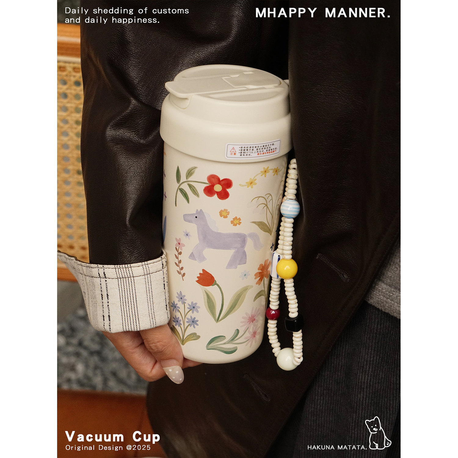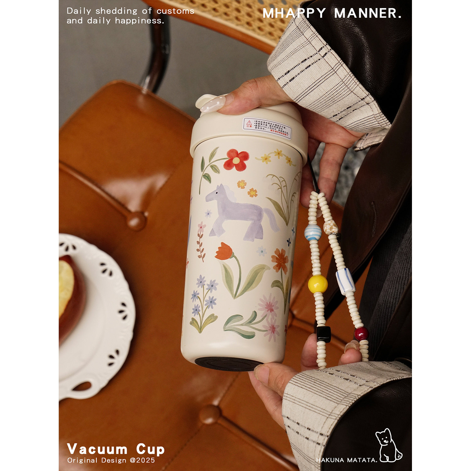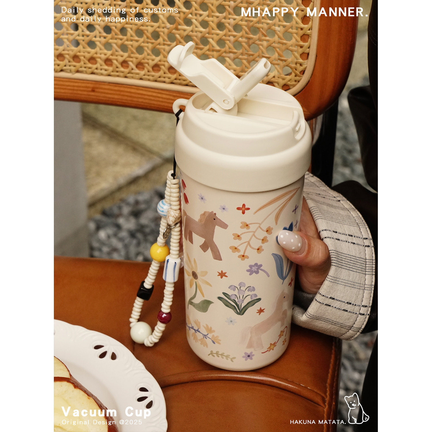 📚 MhappyManner 原创小马吸管保温保冷杯 316不锈钢陶瓷涂层水杯子