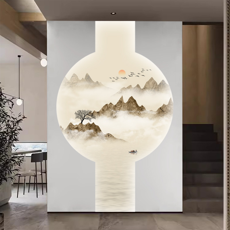 📚 现代新中式背景墙壁纸壁画墙纸墙布山水水墨画芯定制玄关茶室书房