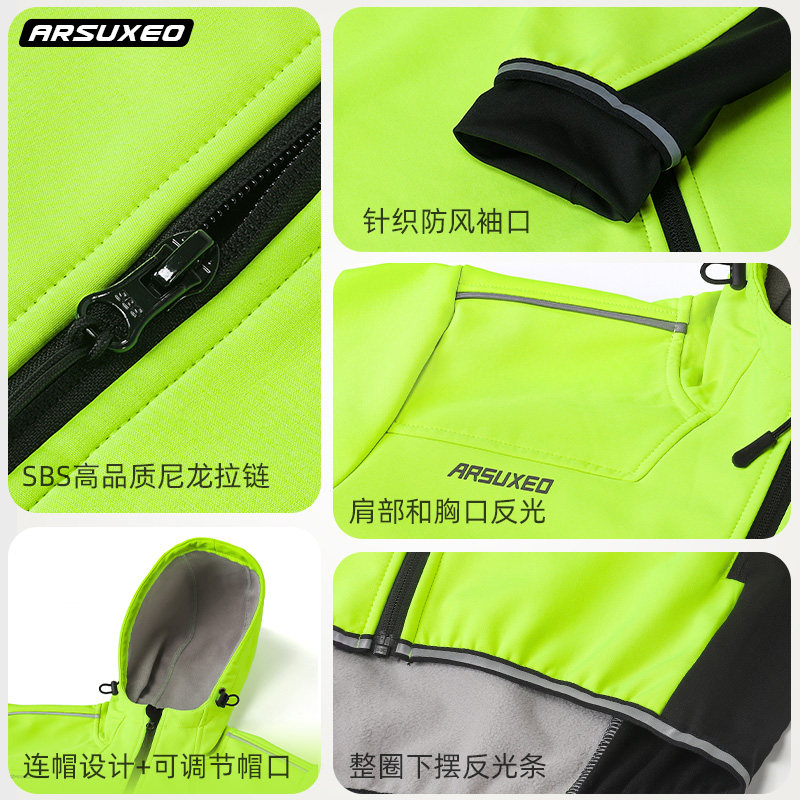 📚 艾速欧秋冬骑行服男防风保暖自行车外套抓绒山地车通勤公路车夹克