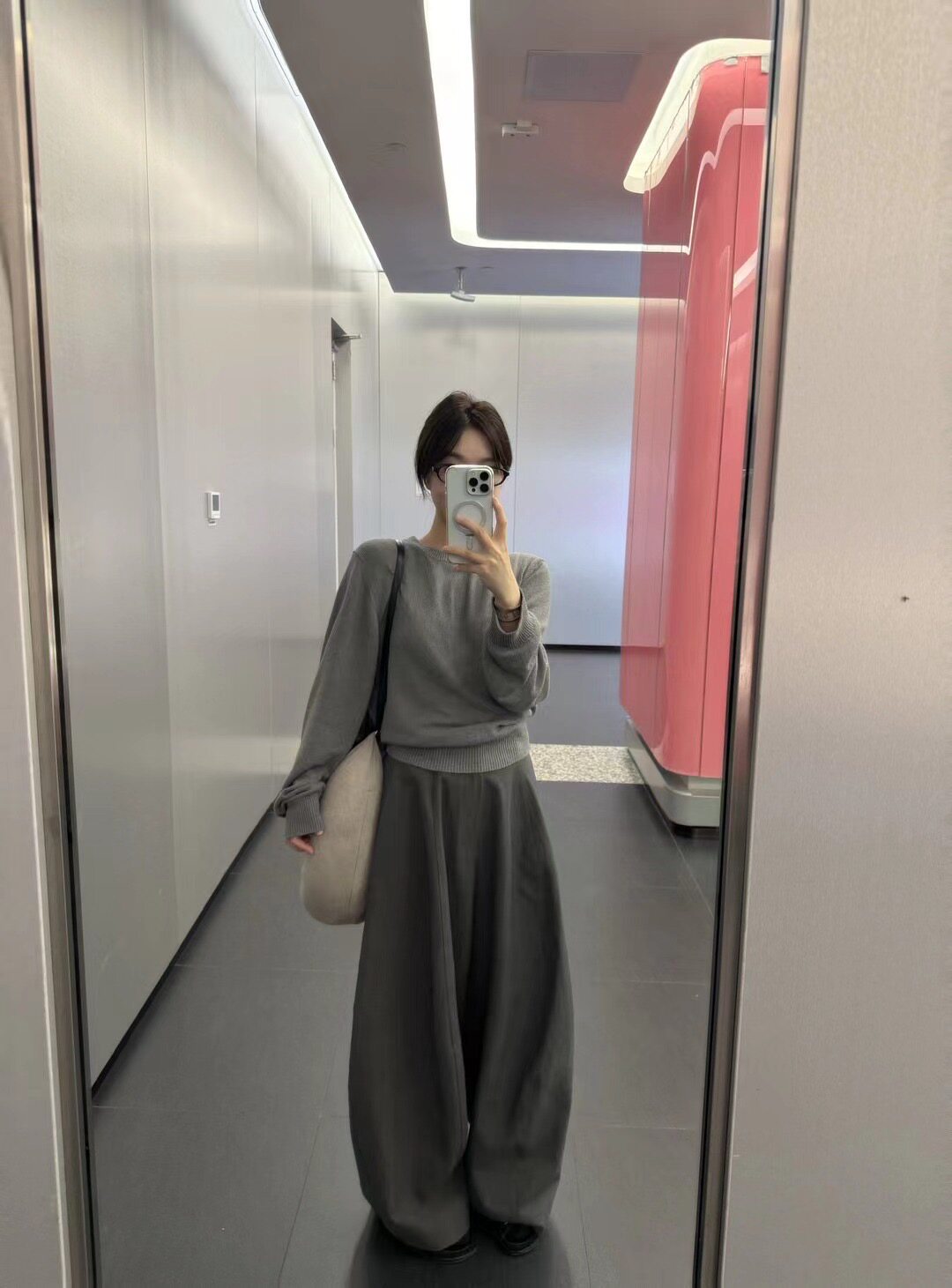 📚 LOW FLAT韩代时髦设计感阔腿裤女秋装小个子宽松休闲九分气球裤女