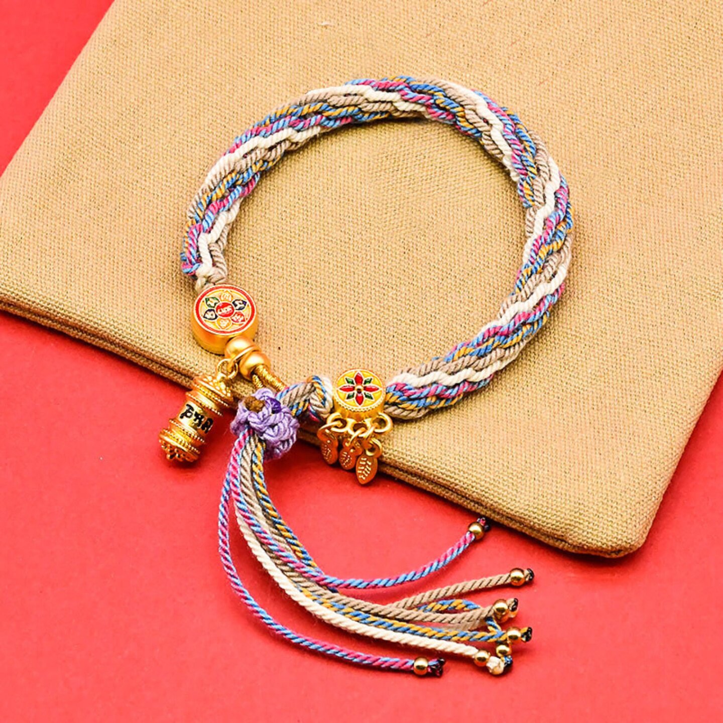📚 仙贤遥藏式手绳手搓棉绳五彩手工编织民族风手链唐卡藏饰轮回手链