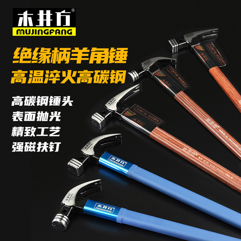 📚 木井方羊角锤高碳钢绝缘柄锤子起钉铁锤榔头多功能装修木工地专用