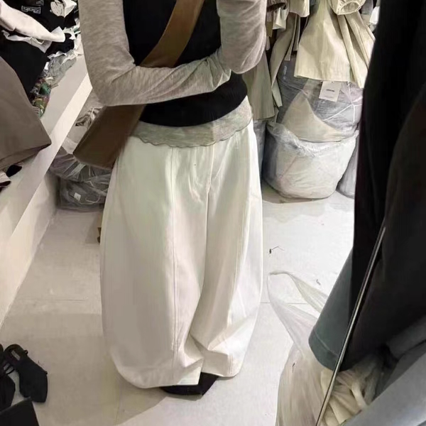 📚 IU ROOM 白色高腰阔腿裤简约韩系慵懒风垂感设计显瘦休闲裤3989